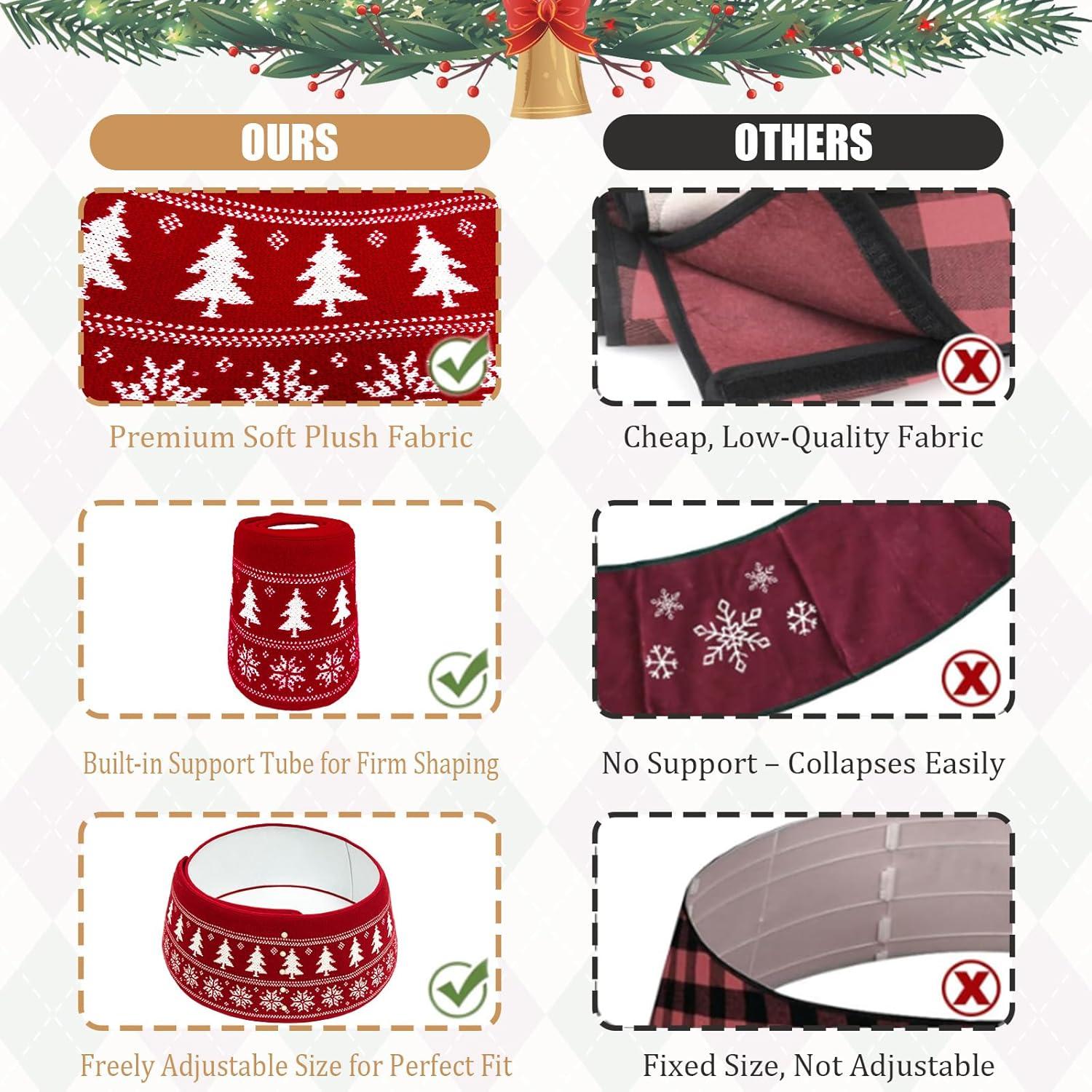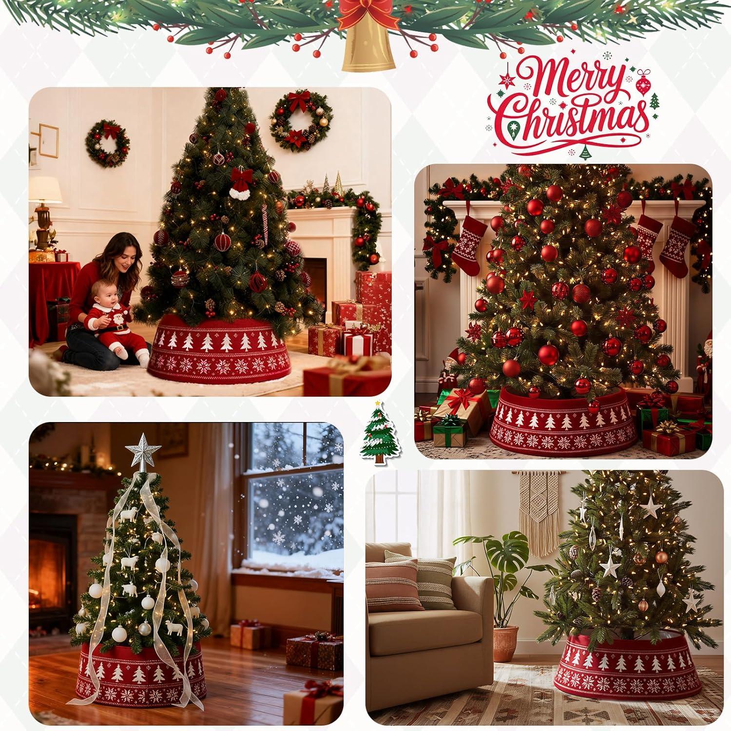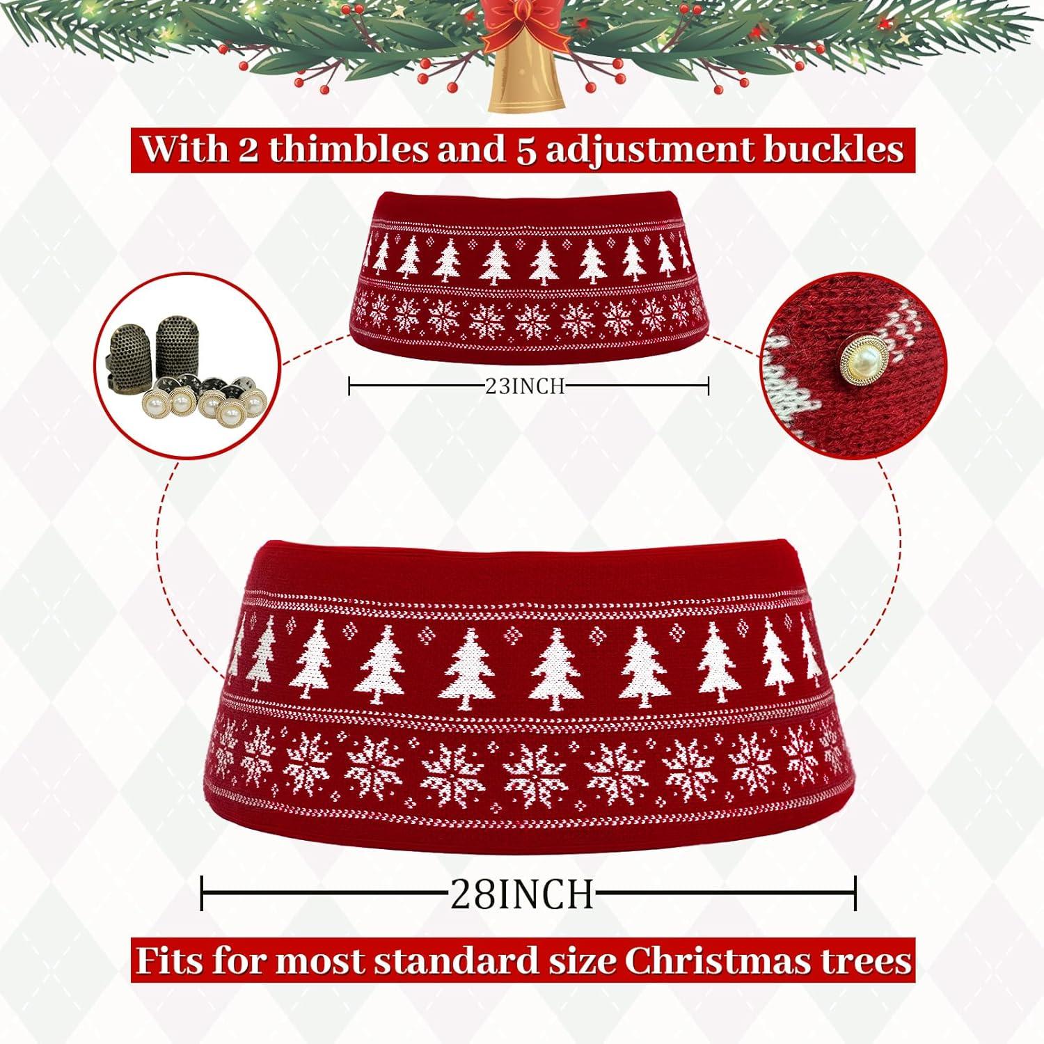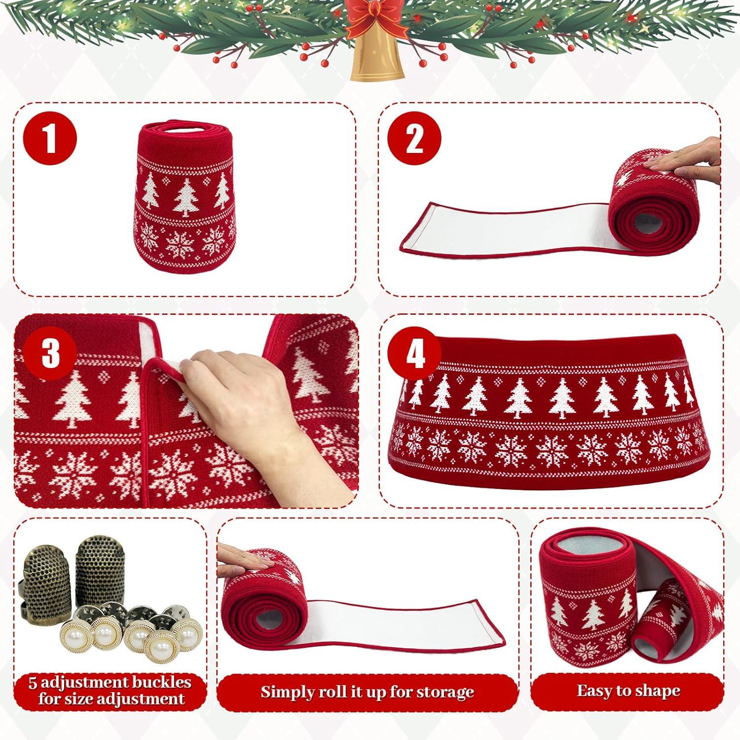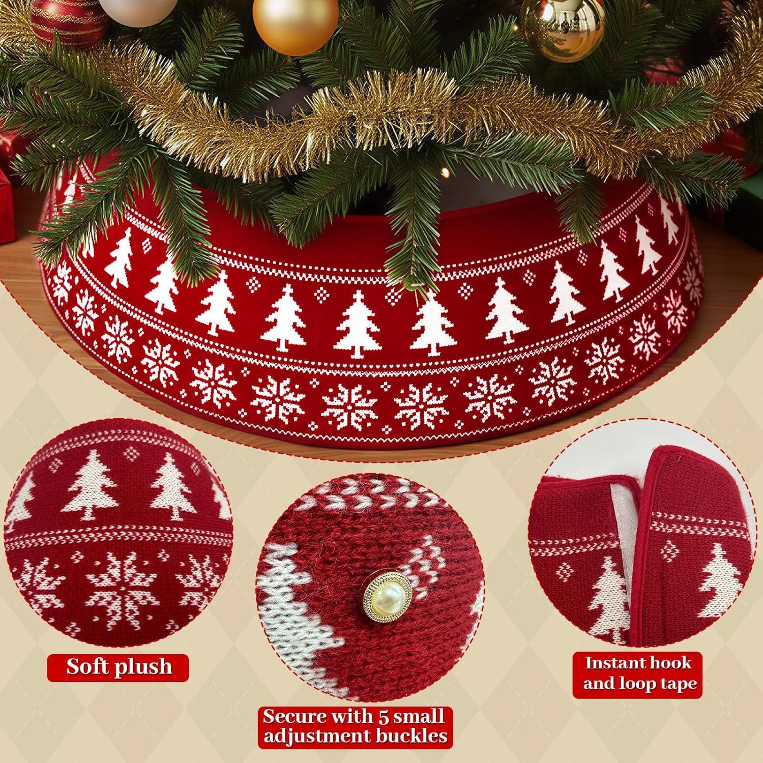 Festive Red Knit Design: The unique red and white knitted pattern adds a warm rustic charm to your holiday home. As a red tree collar and decorative accent, it brings a cozy Xmas tree collar feel, making any living room or holiday setup instantly festive and cheerful