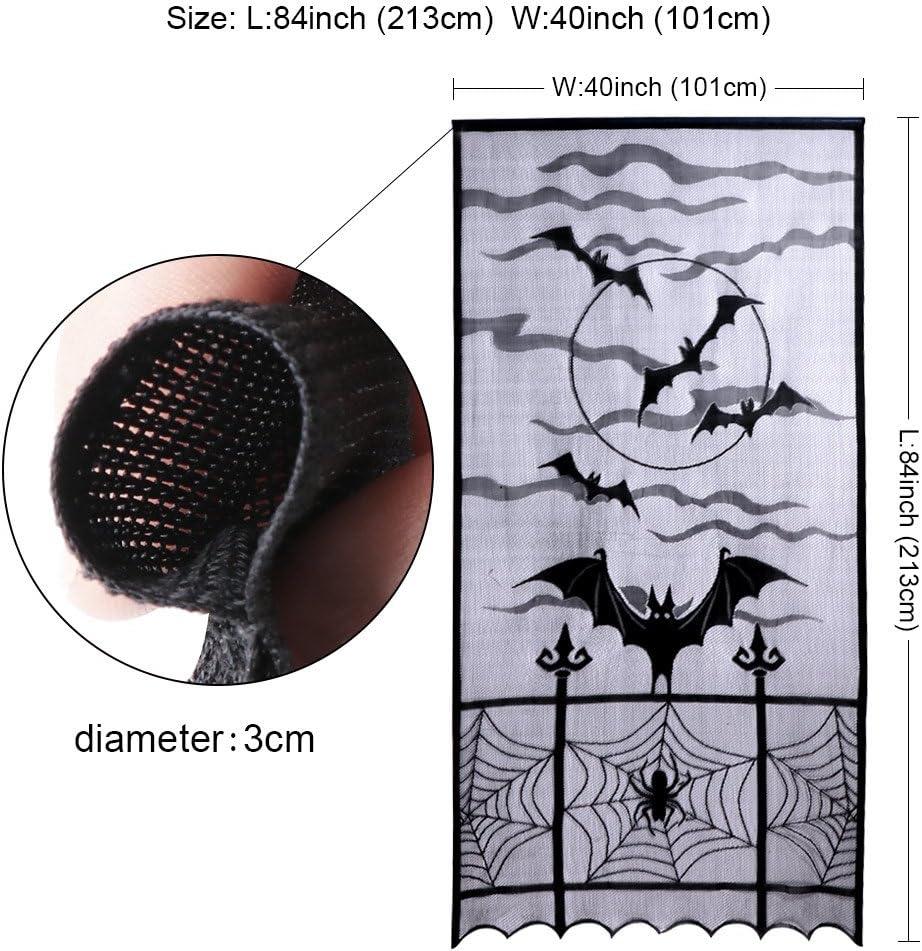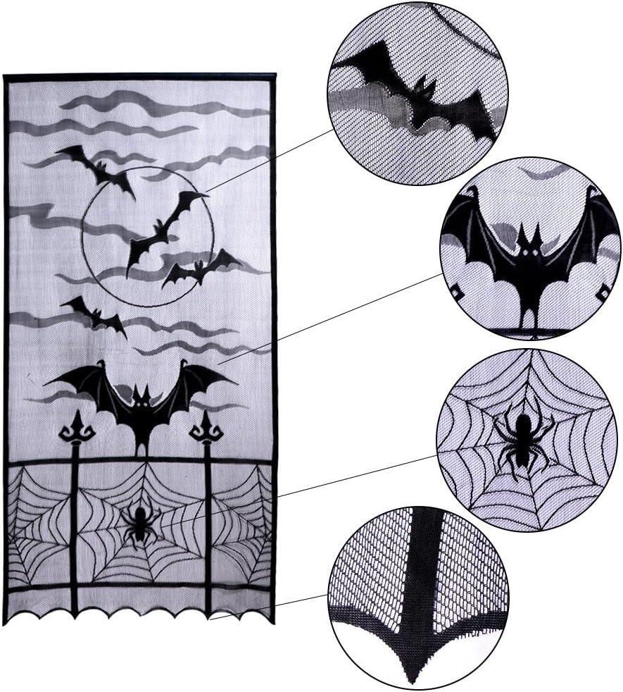 OurWarm 2pcs Black Lace Halloween Window Curtains, Spider Web Bats Door Curtain Panel Decor for Spooky Halloween Holiday Party Decoration, 40 x 84 Inch
