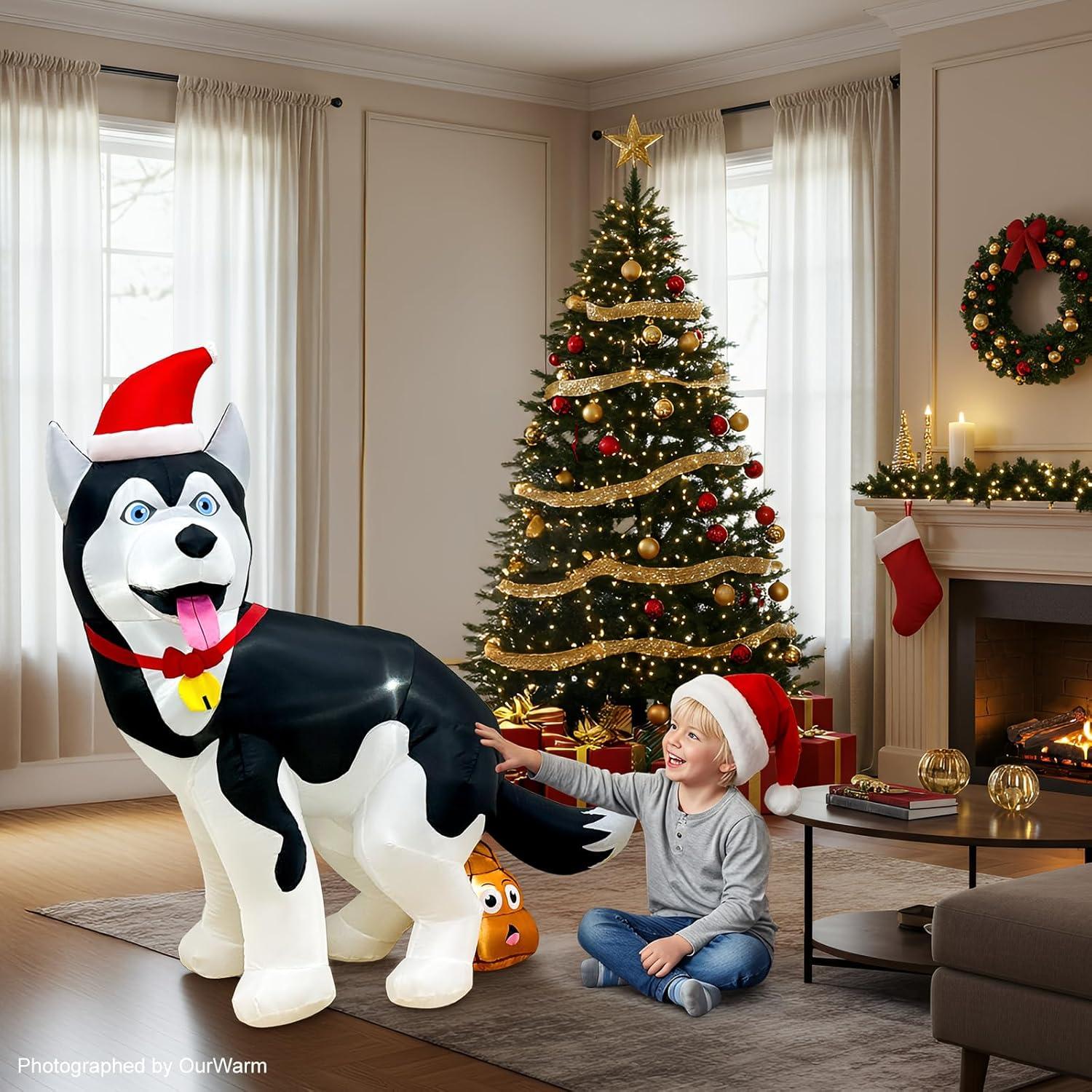 Quick and Efficient Setup: The package includes a built-in 0.8A blower that inflates this quirky Husky dog outdoor Christmas inflatables quickly and efficiently, ensuring minimal setup time. With a 1A UL-approved plug and a 78.7-inch-long power cord, you won’t need to worry about extension cords. Just plug it in and you'll see the Christmas blowups Husky dog in front of you in a few minutes, and then you can set it up wherever you want
