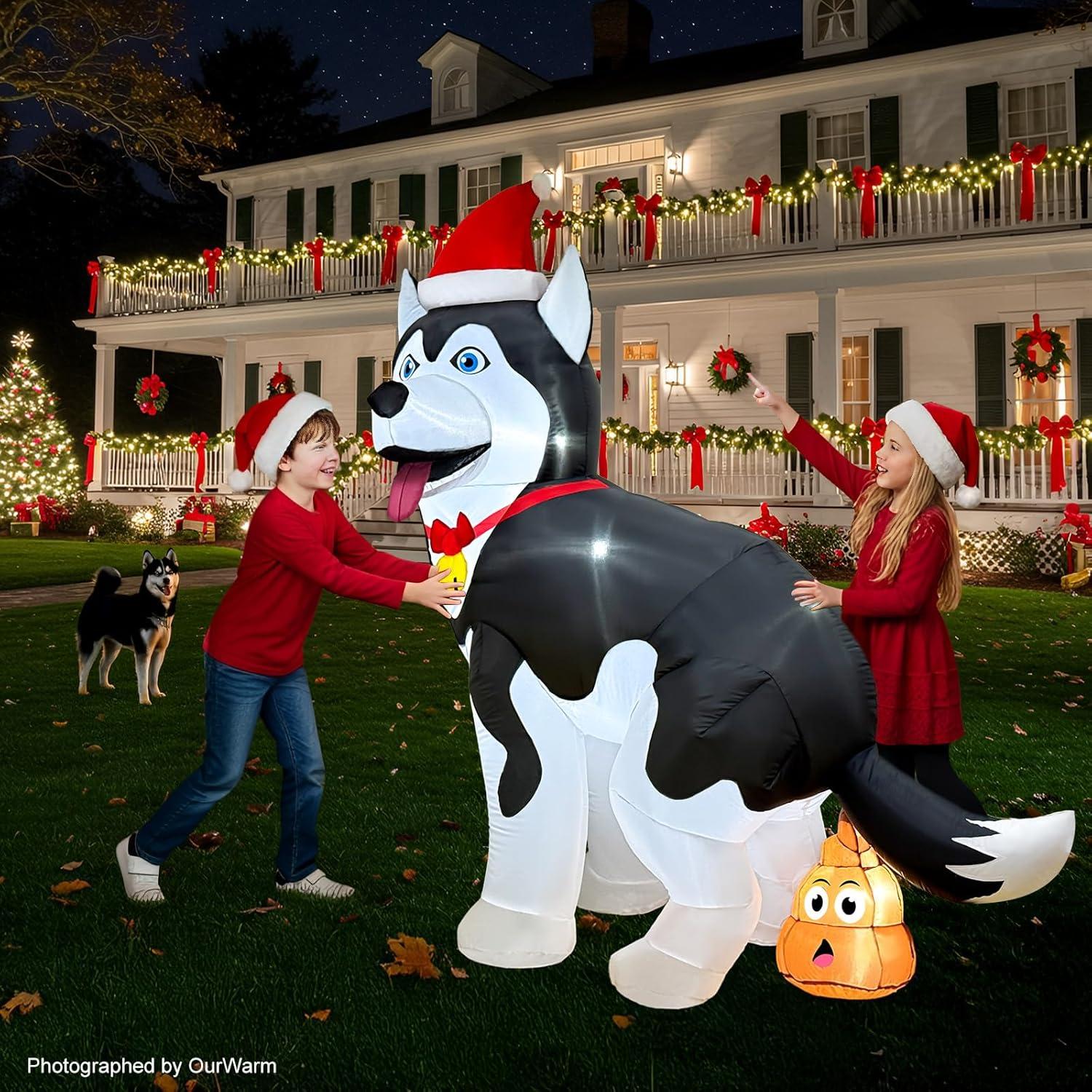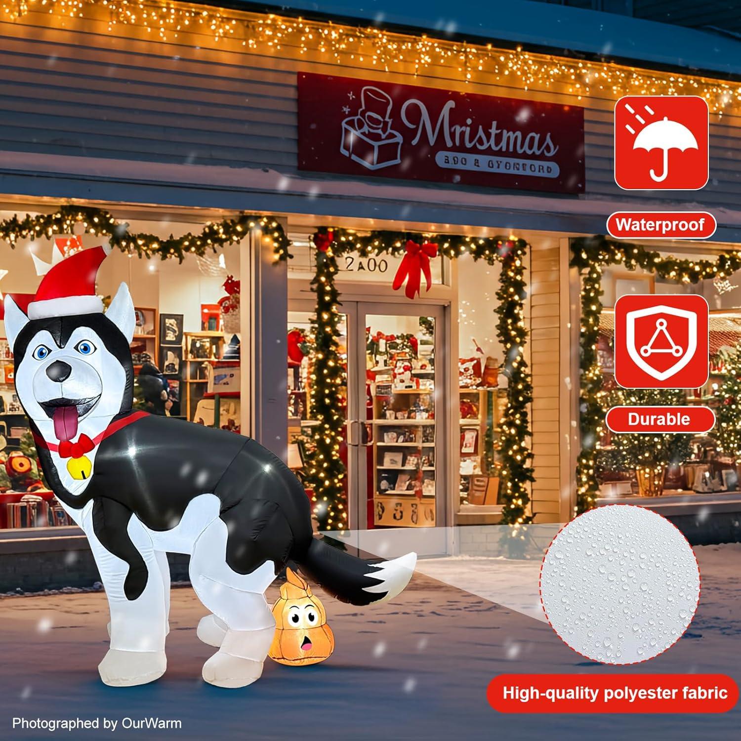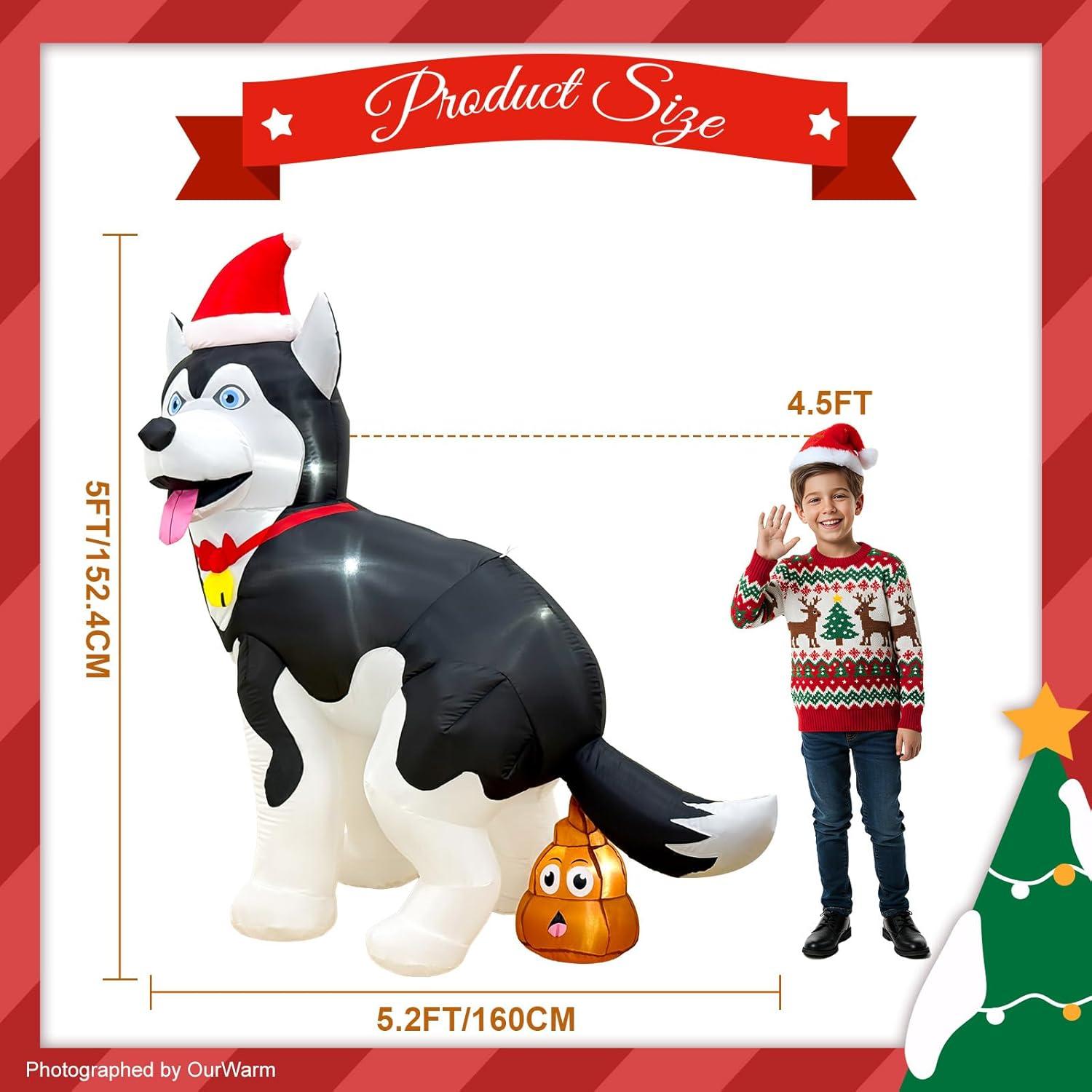 Fun and Whimsical Design: The 5FT inflatable Christmas decorations feature a hilarious Husky dog wearing a Santa hat, smiling with his tongue out while “pooping” in your yard. It's a playful and unique addition to your outdoor Christmas decorations, sure to bring smiles and laughter to everyone who sees it—ideal for adding some humor to your Christmas lawn or garden. Everyone will love this Christmas blow ups dog