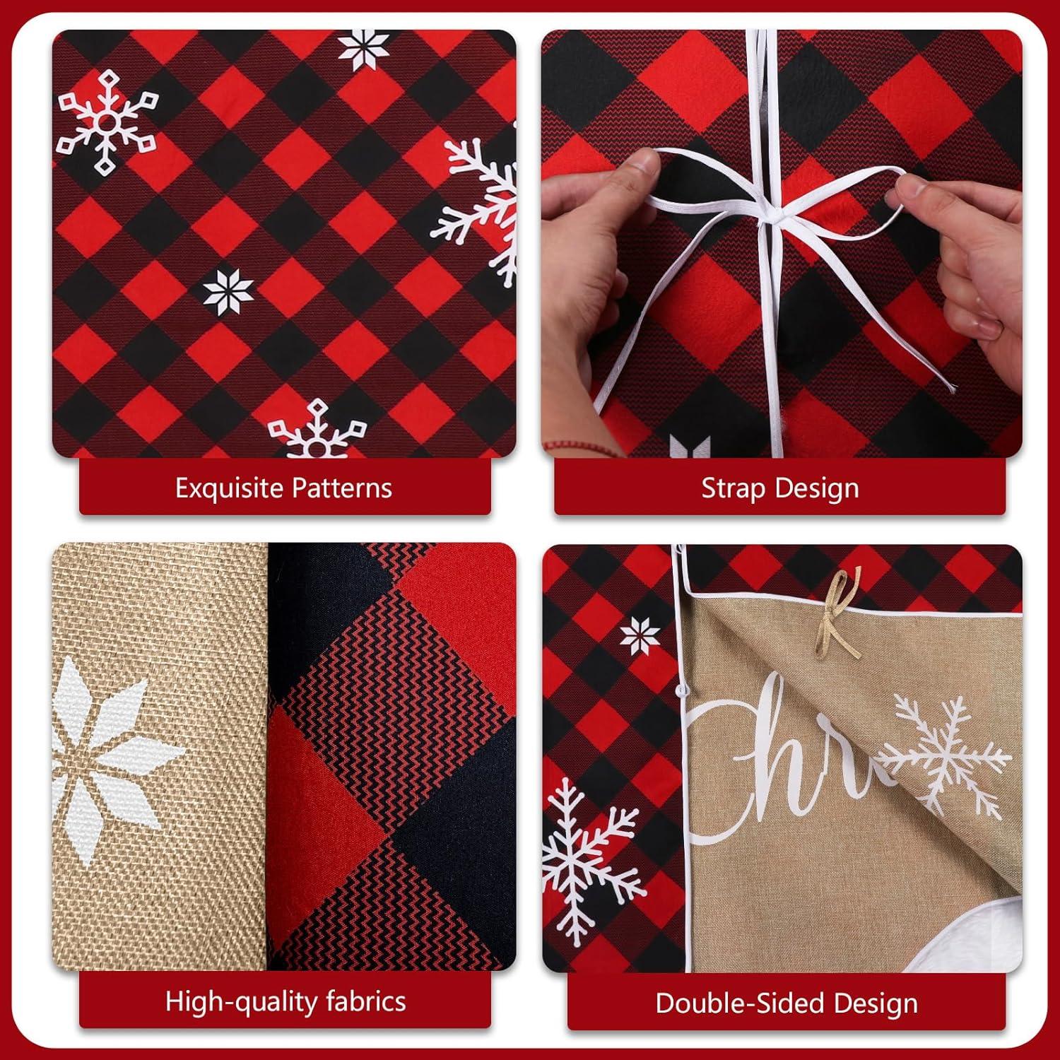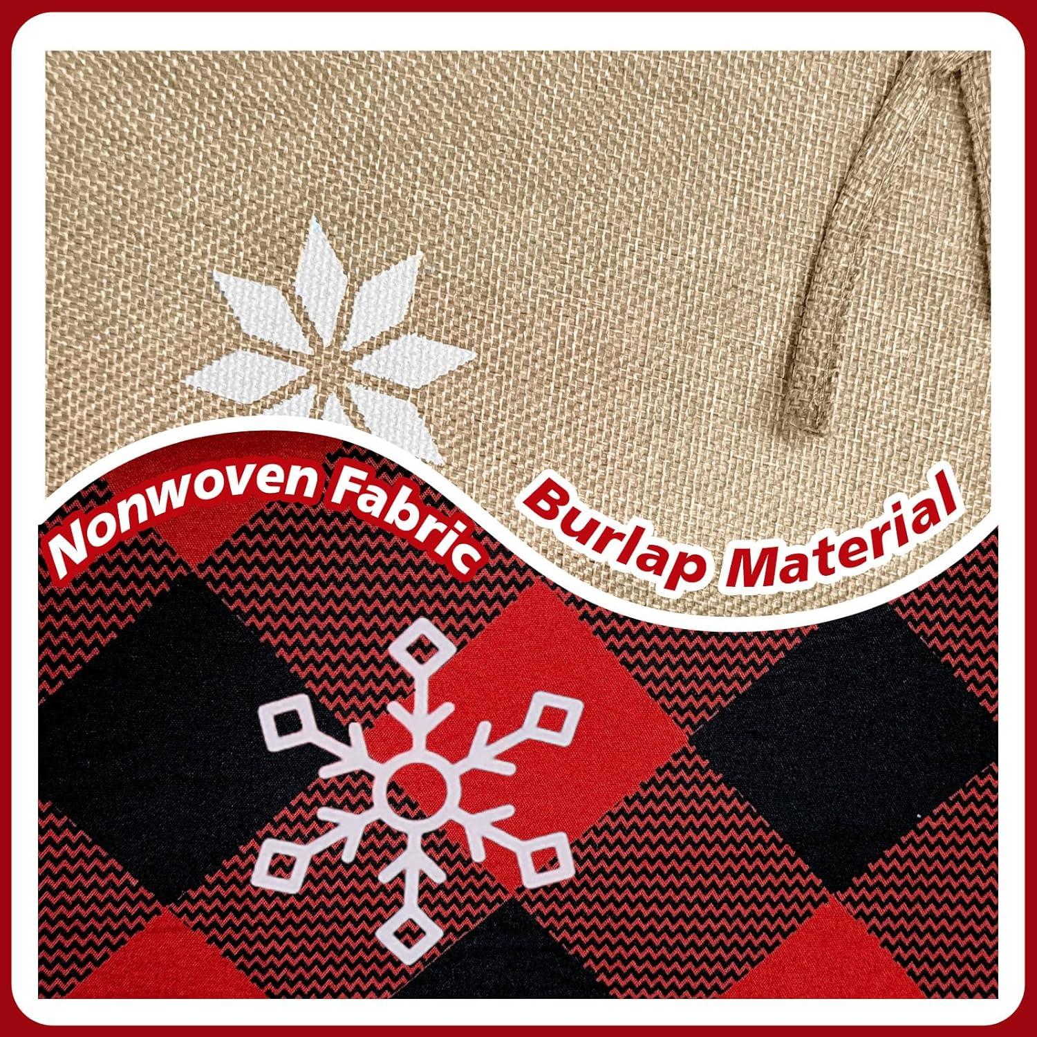 Double-Sided Design – This 72 inch tree skirt features a classic red & black plaid on one side and a burlap snowflake pattern on the other, offering versatile style for a vintage tree skirt look or a cozy rustic skirt for Christmas tree display