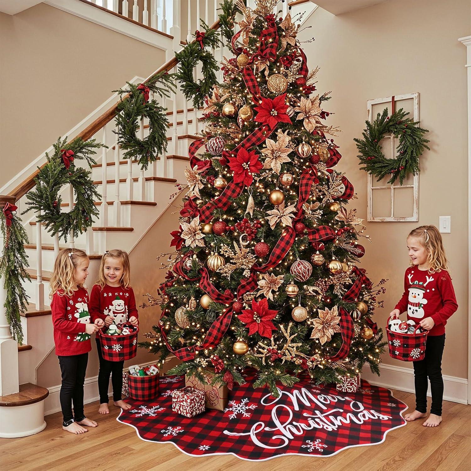 Generous Size for Big Trees – At 72 inches, this tree skirt for 9 foot tree provides ample coverage for 7.5–12 ft trees, hiding stands while enhancing the festive. Ideal as a statement plaid Christmas tree skirt for large holiday displays