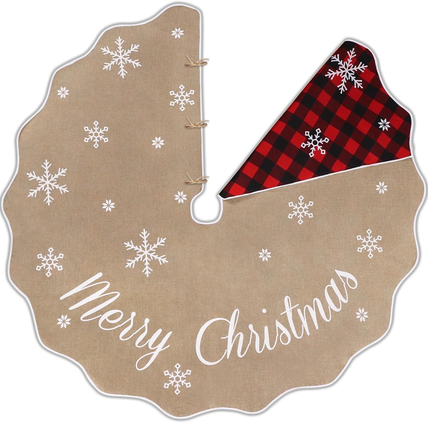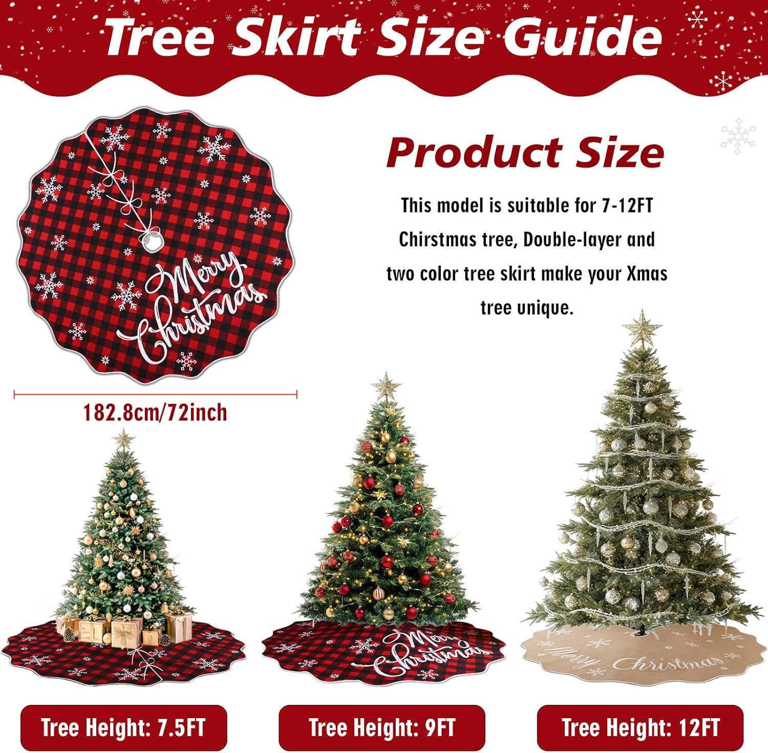 OurWarm 72 Inch Christmas Tree Skirt, Buffalo Plaid Tree Skirt for 7.5 ft Tree to 12ft Tree, Double Sided Burlap Tree Skirt Snowflake Xmas Tree Skirts for Winter Rustic Boho Farmhouse Tree Decor