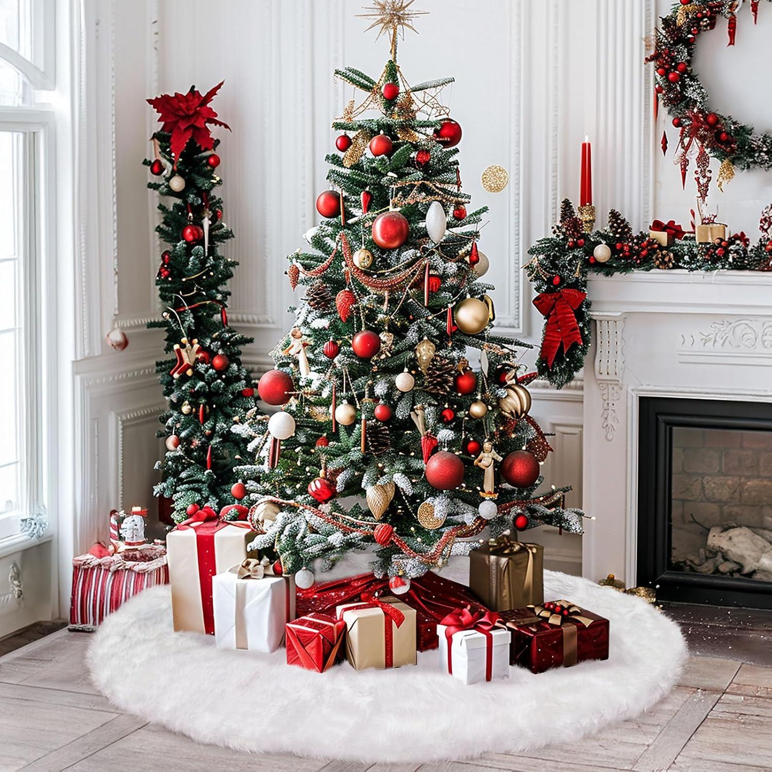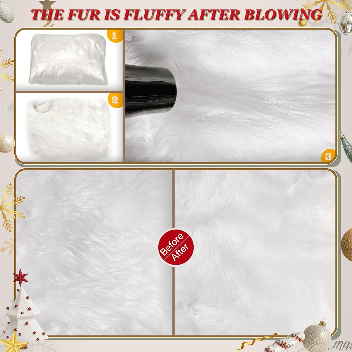 Extra Large Size: Elevate your indoor Christmas decor with our 72 inch white faux fur tree skirt, designed specifically for large trees. Its generous size allows for ample space to place gifts while protecting your floors from tree water, needles, and other debris. Enhance your home’s festive ambiance with flawless coverage.