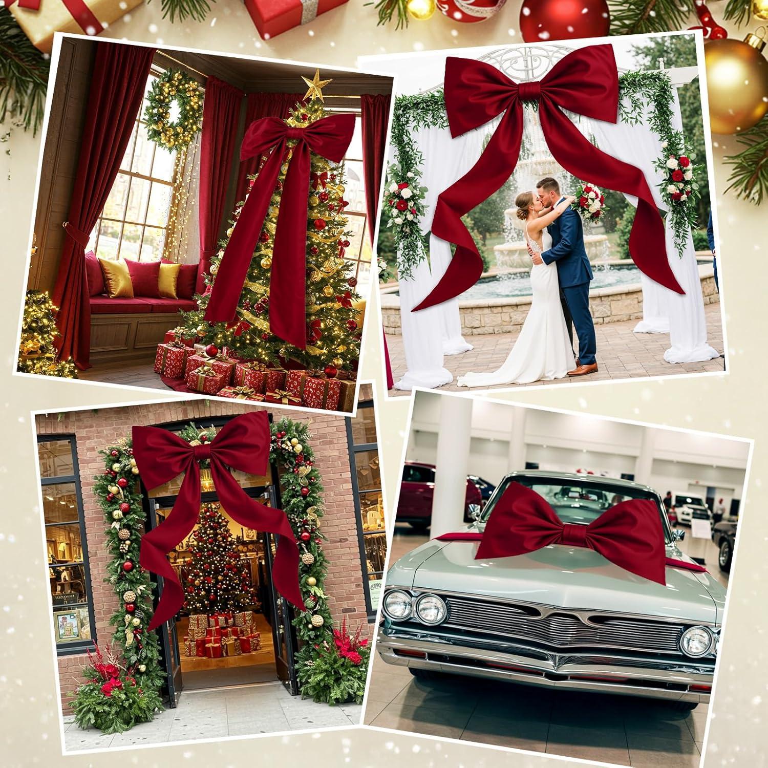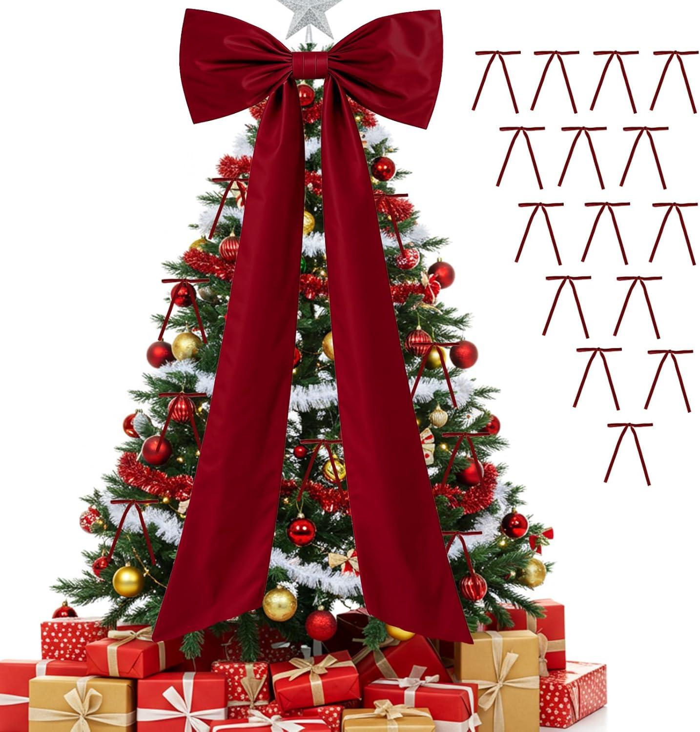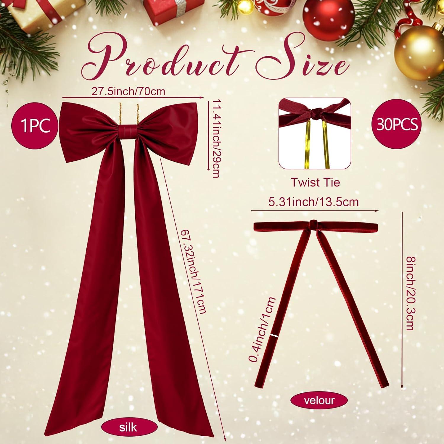 🎀Complete & Coordinated Holiday Elegance: Instantly elevate your Christmas décor with this all-in-one set. 1 oversized wine-red bows for Christmas tree (27.5″ x 78.7″) with flowing streamers and 30 matching velvet Christmas bows for tree (5.3″ x 8″). Achieve a cohesive, luxurious look across your tree, wreaths, garlands, gifts, stockings, and holiday displays