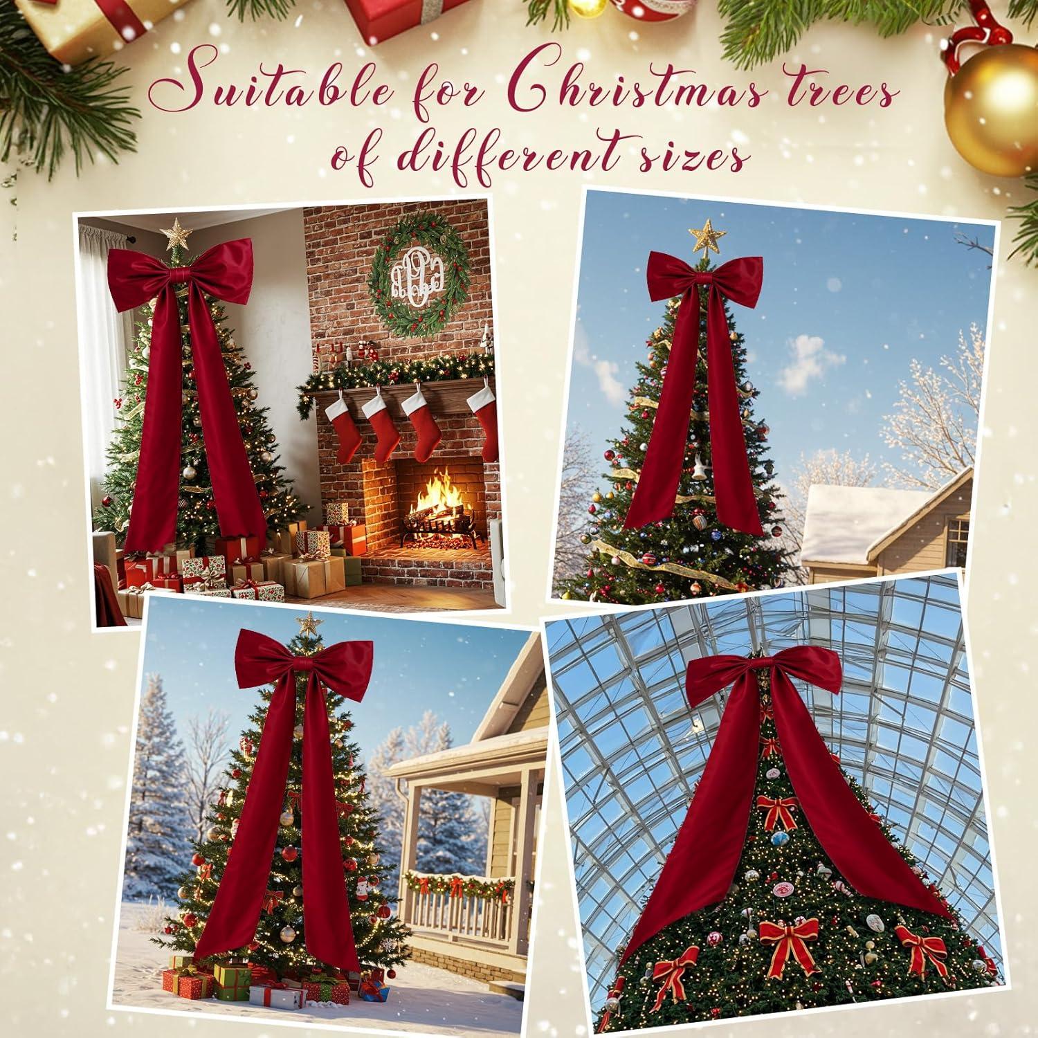 💎Premium Fabrics with Lasting Beauty: Designed to impress season after season, the large bow tree topper features lustrous silk with a reinforced felt core to maintain its full, elegant shape. The accent bows are crafted from soft velvet, adding cozy sophistication and timeless charm to your Christmas tree decorations