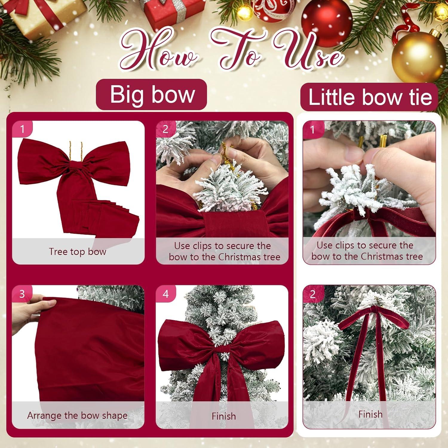 🏠Multi-Use Festive Decorations: Not just for the tree—this red bow Christmas tree topper set is perfect for indoor and outdoor holiday displays. Use the large red bow on mantels or doorways, and decorate gifts, windows, stair rails, or party spaces with the velvet bows. Ideal for Christmas, weddings, parties, and festive celebrations