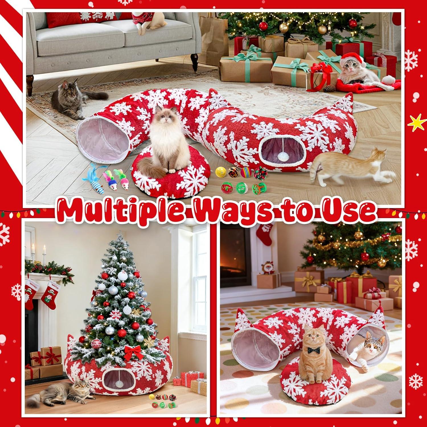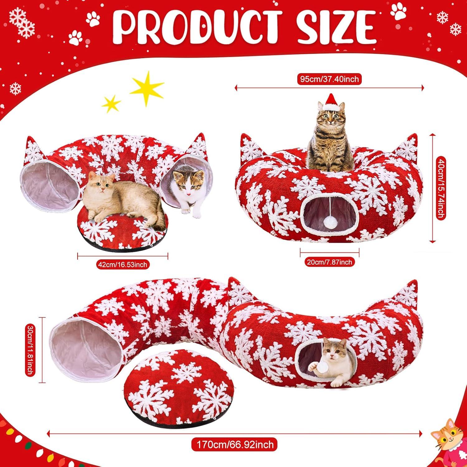 Multipurpose Use & Convenient Storage: Perfect for use as a festive hideaway during Christmas or as a year-round indoor playground, this tunnel folds down in seconds for compact storage. Ideal for living rooms, bedrooms, or holiday setups, this cat playhouse ensures your pet has a fun, private space that’s easy to move or pack away