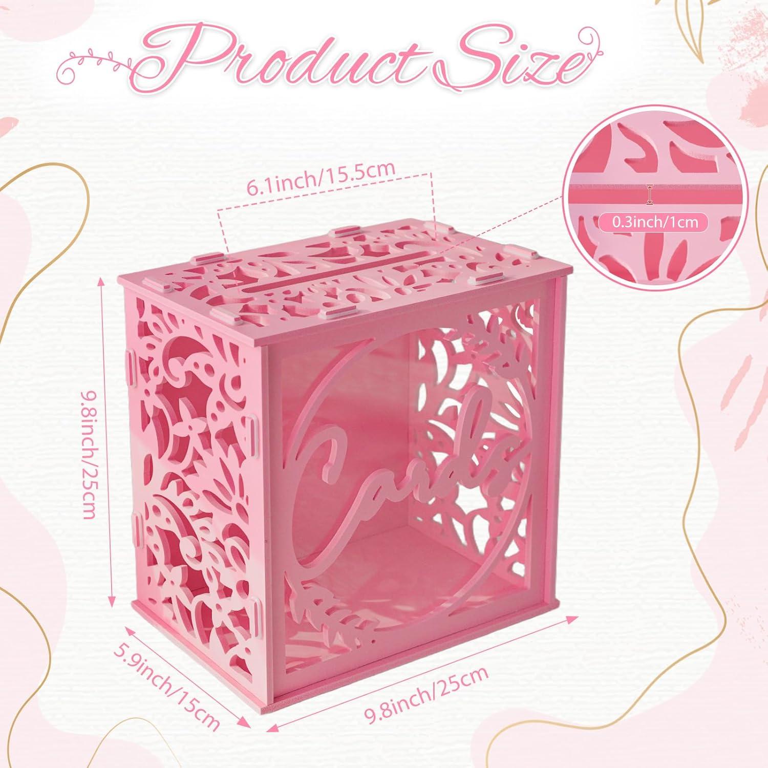 OurWarm Pink Wedding Card Box with Acrylic Window, Elegant PVC Gift Card Box for Weddings Decorations for Reception, Index Wedding Card Boxes for Reception Anniversary Bridal Shower Birthday Decor