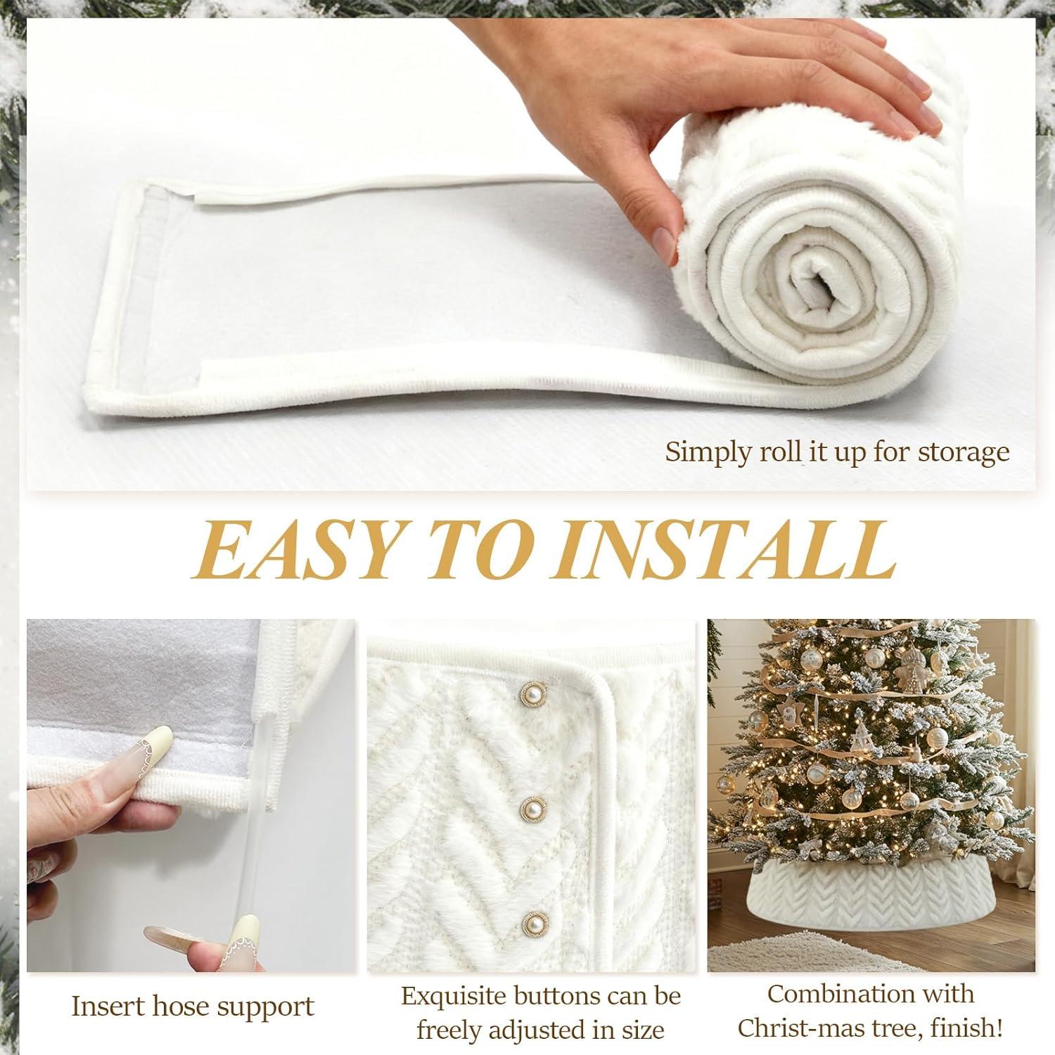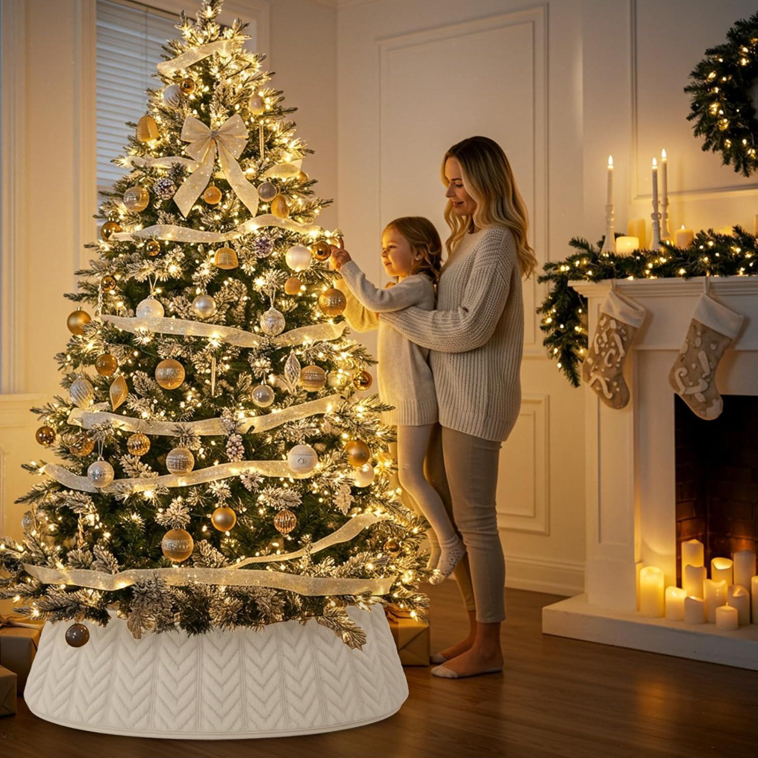 Functional Base Cover Solution: Conceals stands, wires, and baskets neatly, serving as a durable Christmas tree base cover or Christmas tree bottom cover. Families who love the look of a white Christmas tree skirt or Christmas tree skirt white will appreciate its cozy yet practical holiday finish
